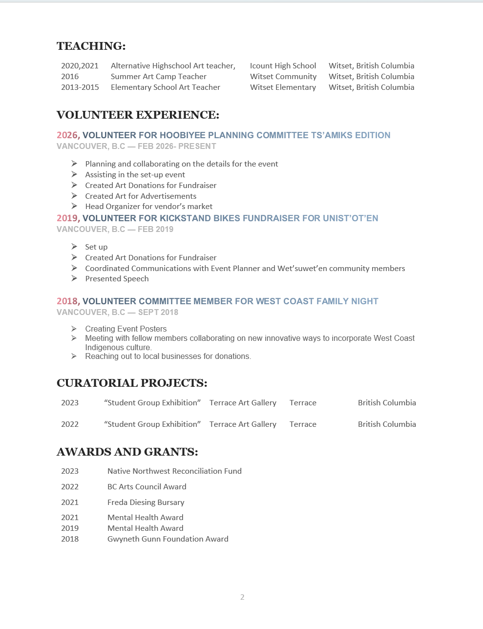 Artist CV