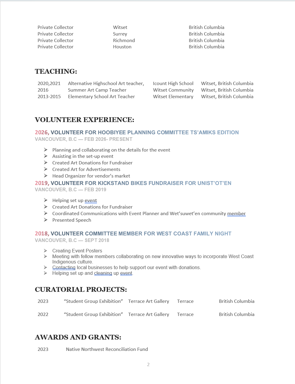 Artist CV